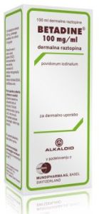 Betadine je jodna otopina za dezinfekciju kože i manjih rana. Nakon nanošenja, pustite da se osuši 2-3 minute. Ne razrjeđivati, ne ispirati.