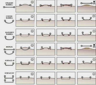 Ovisno o dijelu tijela na kojem se radi, surface nakit može varirati po duljini i debljini. Kada se radi o duljem nakitu (npr. za sternum ili nape), tijelu treba više vremena da bi se piercing kanalić u potpunosti epitelizirao (da se iznutra stvori novi sloj kože).