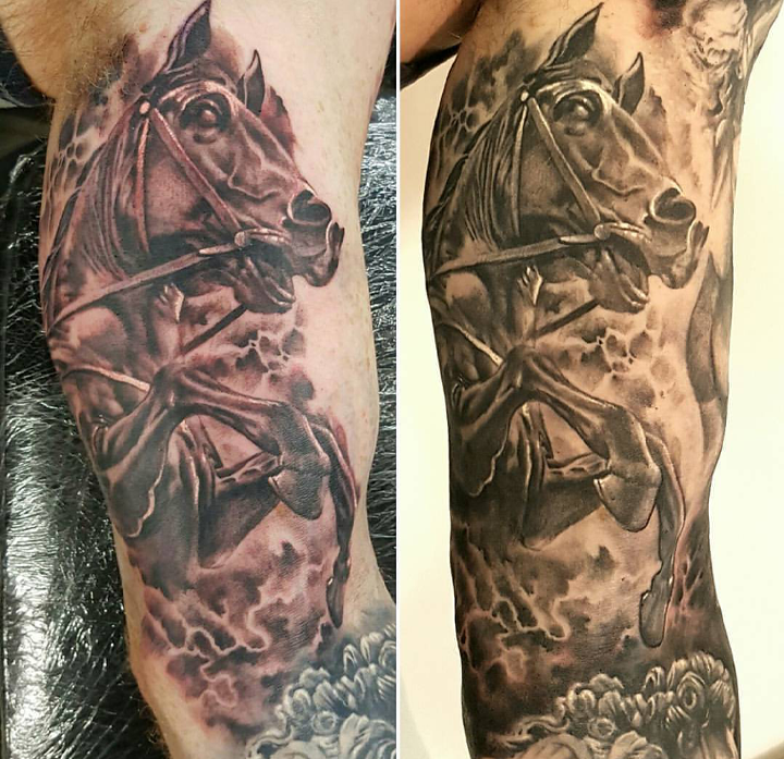 U galeriji su neki primjeri tetovaža skinuti sa Interneta (nisu naši radovi) na kojima možete vidjeti različite vrste tetovaža slikane odmah nakon izrade te nakon zarastanja. Tetovirači obično slikaju tetovažu odmah po završetku tetoviranja tako da je na tim slikama koža crvena a boje vrlo intenzivne. Prije slikanja ponekad se koriste preparati za njegu svježe tetovaže koji koži daju dodatni sjaj. Morate biti svijesni toga da to nije realni finalni izgled tetovaže. U cilju što bolje promocije, neki tetovirači obrađuju slike tetovaža prije objavljivanja na društvenim mrežama. To radimo i mi – mičemo pozadinu kako bi sama tetovaža što više došla do izražaja a feed na našem profilu izgledao što bolje. No NIKAD ne editiramo samu tetovažu niti ne koristimo filtere prilikom objave. Danas su programi za uređivanje slika toliko sofisticirani da je teško raspoznati editiranu sliku od originala. Zato imajte na umu da nije sve što vidite na Internetu stvarno ili izvedivo.